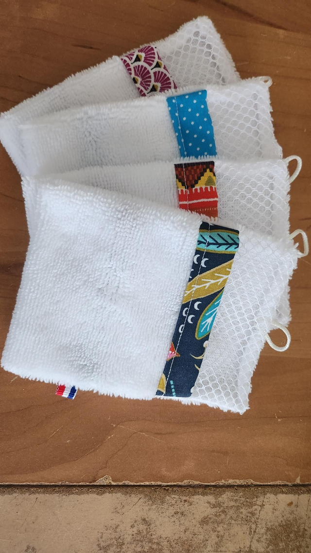 Gants sauve savon fabriqué main , en éponge de bambou et fils de coton.