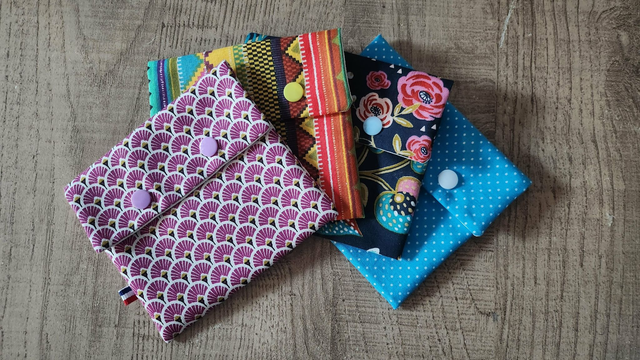 Pochette à savon en coton et doublure en tissu enduit.